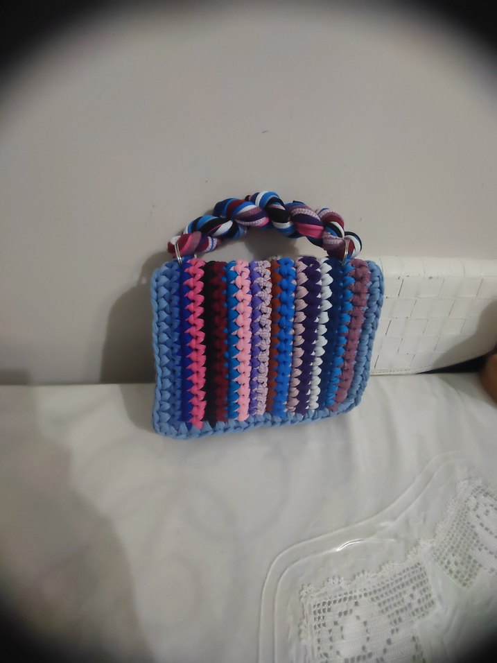 Renkli örgü tasarıma sahip, örgü saplı bohem tarzda kadın çantası. Günlük kullanım için uygundur. hiç kullanılmamıştır
