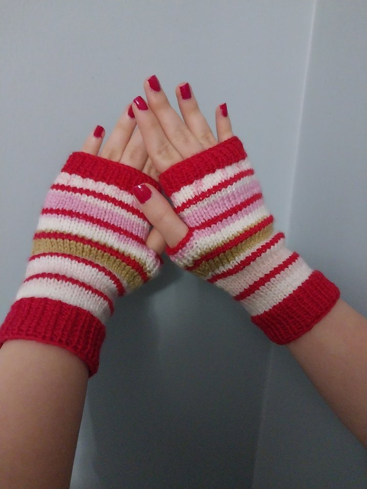 Renkli çizgili, örgü ve parmakları açık kadın eldivenleri, sıcak tutar ve bohem tarzı yansıtır.