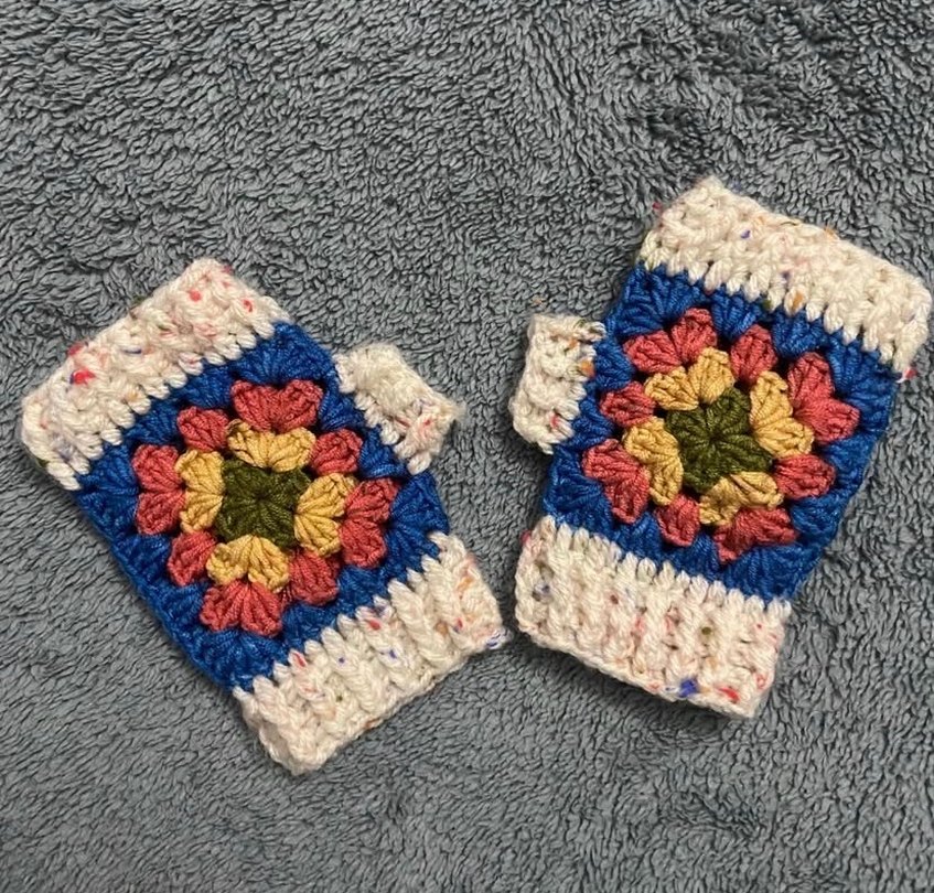 Yumuşak örgüden yapılmış, renkli bohem desenli, rahat ve sıcak tutan örgü kadın eldivenleri. İstenilen renk yapılır