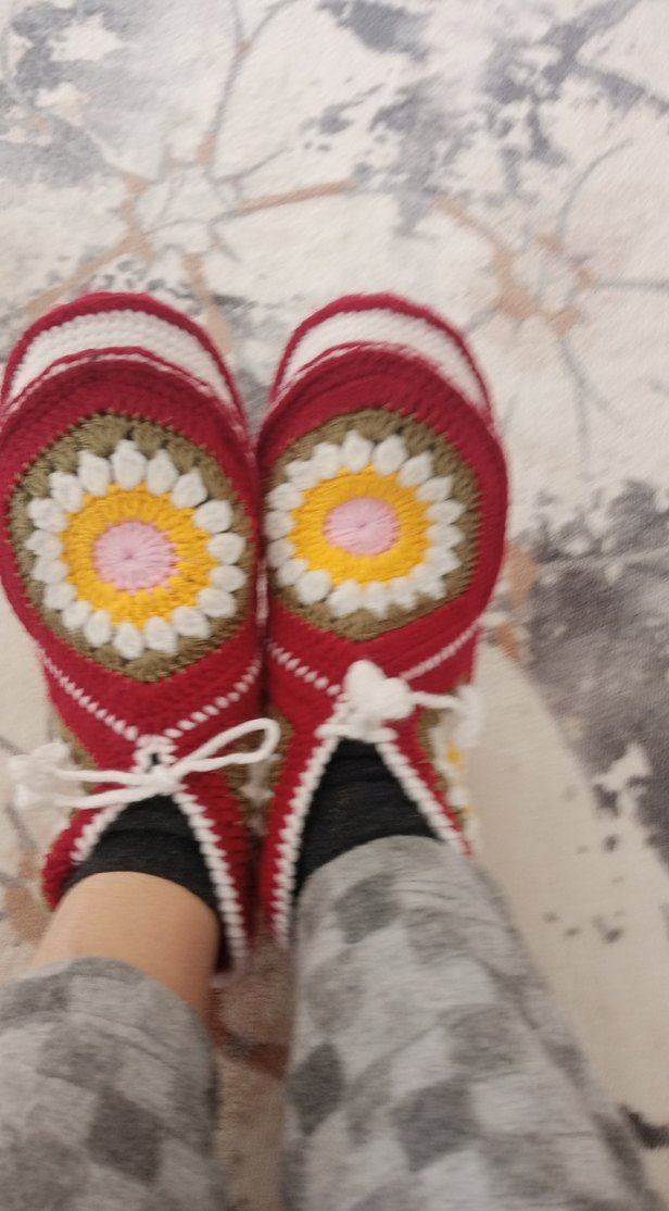 Renkli çiçek desenli örgü vekadın terlikleri, rahat bohem tarz için uygundur. Günlük kullanım için idealdir. 38 ve39 kullanımlı