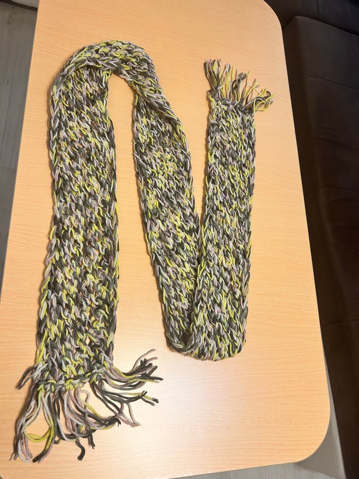 Bu kadın şalı, çok renkli örgü tasarıma sahip, bohem ve retro stiller için uygun, püsküllü uçlarıyla dikkat çeker.