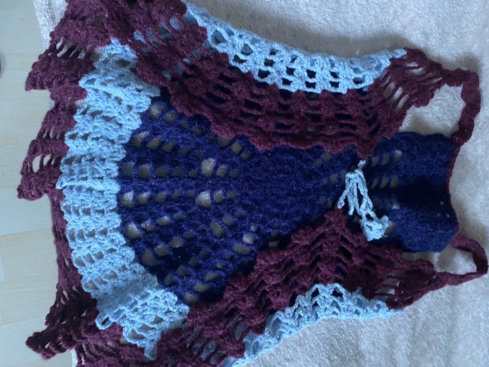 Kadınlar için renkli, koyu tonlarda örgü şal. Bohem tarzını yansıtan, retro ve hippie ruhuna uygun, el işi görünümlü bir model. Fiyat sorunuz