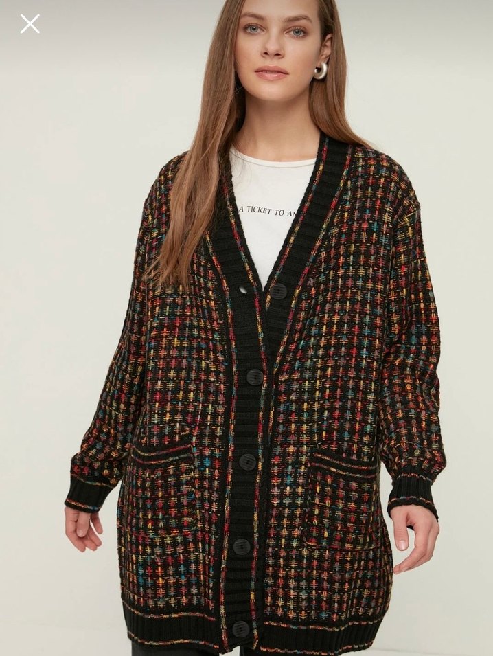 Renkli Örgü Kadın Salaş Hırka