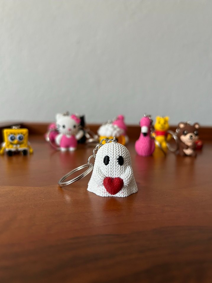 Renkli Örgü Kalp Detaylı Hayalet Anahtarlık