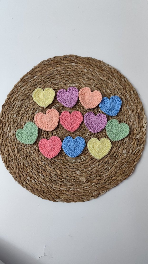 Çeşitli pastel tonlarda, el işi renkli örgü bohem kalpler, dokuma bir mat üzerinde düzenlenmiş. Her kalp özenle hazırlanmıştır, dekoratif kullanım için uygun. örgü kalp motif adet fiyatı 12 TL'dir. istediğiniz renk ve adette sipariş verebilirsiniz. ilan açtırın lütfen #örgümotif #obje #örgükalp #kalpobje