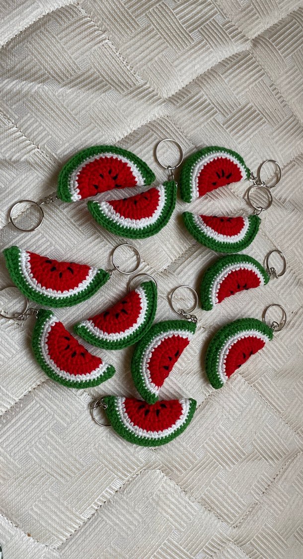 Bohem tarzına uygun, örgü ve renkli karpuz dilimi şeklinde anahtarlıklar. Eşimde kalanları toplu şekilde satıyorum uyguna bırakıyorum