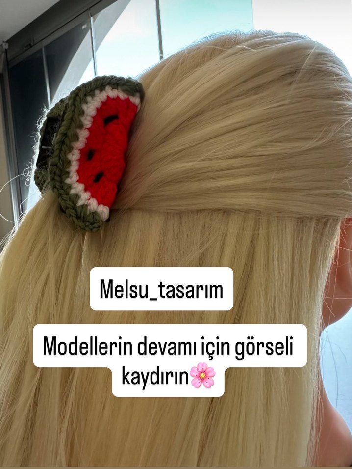 Örgü yapılı, canlı karpuz desenli çocuk be yetişkin saç tokası, trend ve avangart tarzlar için uygundur. Adet fiyatı ……..marka temsili
