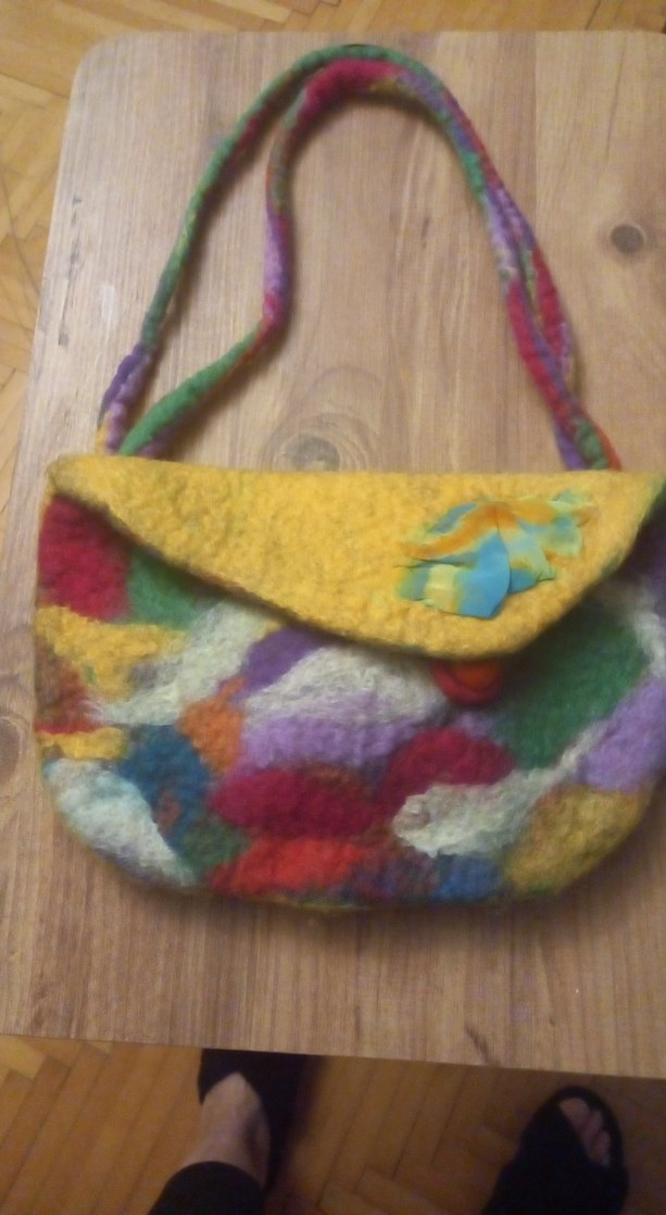 Renkli Örgü keçe kadın cantasi