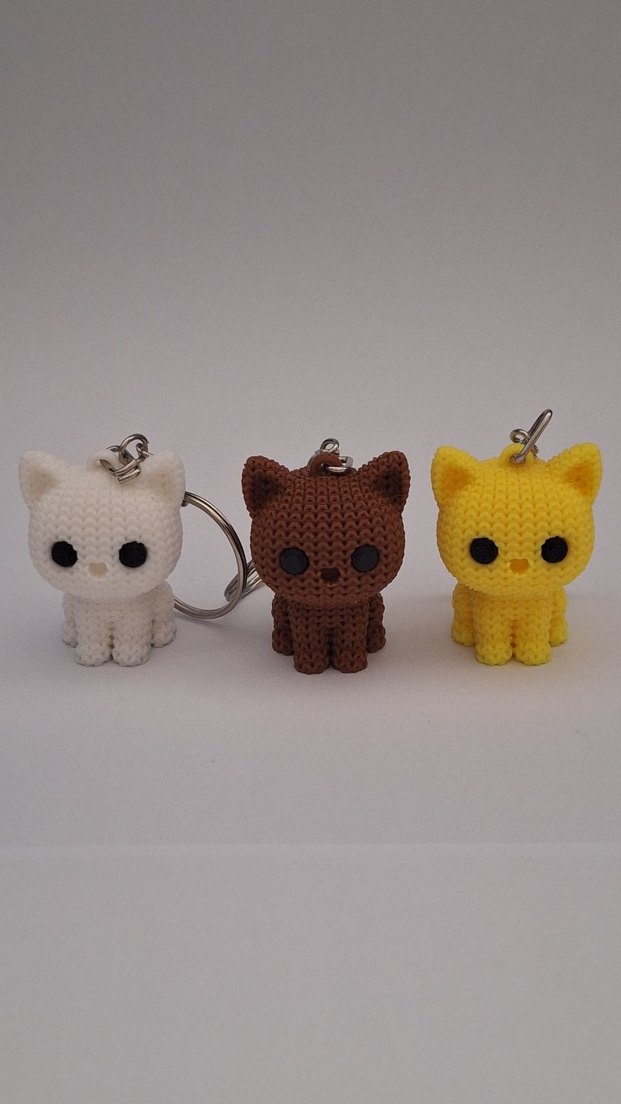 3D Renkli Birbirinden Tatlı Örgü Görünümlü Kedi Anahtarlık