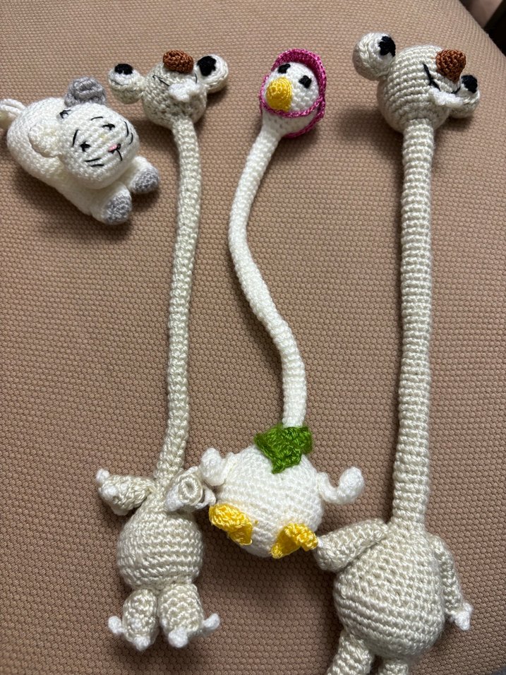 Uzun boyunlu, hayvan figürlü renkli örgü kedi oyuncakları, yumuşak iplikten yapılmıştır. Tanesi 300