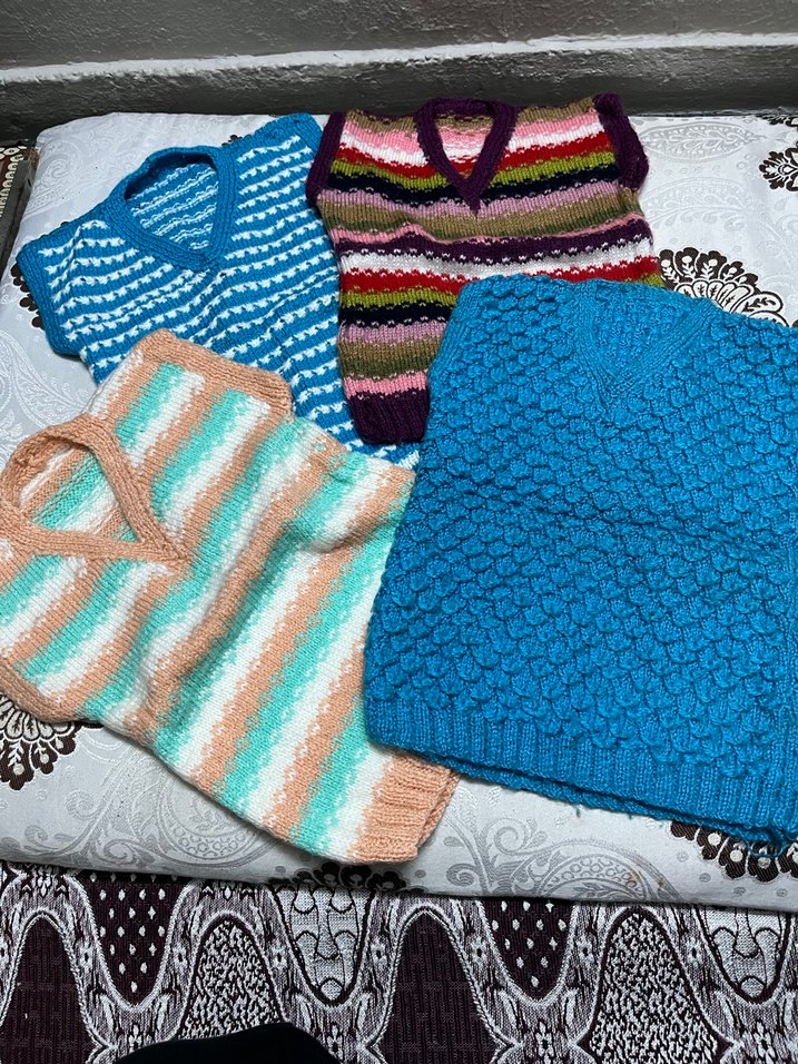 Renkli, örgü kız çocuk süveterleri. Kolsuz, bol kesim ve bohem tarzda, farklı örgü desenleriyle dikkat çekiyor. 4lü olarak gönderim sağlanacaktır sorunları yoktur 3 yaşa kadar rahatlıkla olur