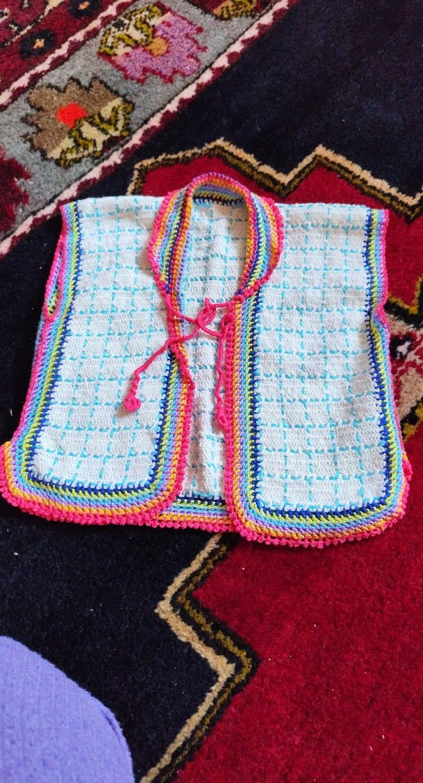 Renkli Örgü Kız Çocuk yelek el örgüsü yeni gibi