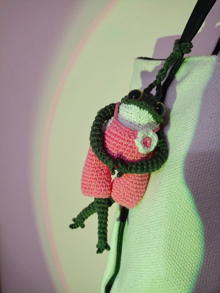 Renkli Örgü Kurbağa Çanta Charm Anahtarlık