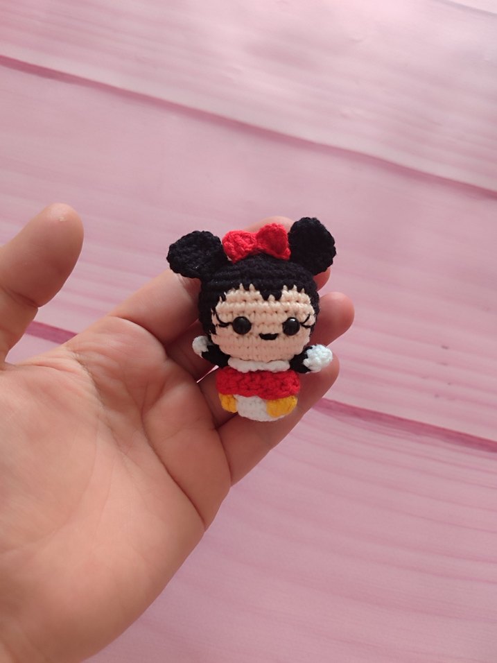Renkli ve örgü Minnie Mouse anahtarlık, sıcak ve eğlenceli tasarıma sahip. Anahtarlarınıza şıklık katmak için ideal.