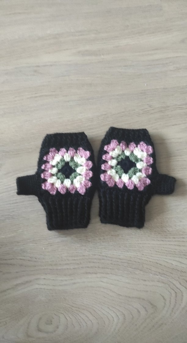 Koyu renkli, çok renkli örgü parmakları açık kadın eldivenleri, bohem ve retro çiçek desenli, gotik stile uygun rahat bir tasarıma sahiptir.
