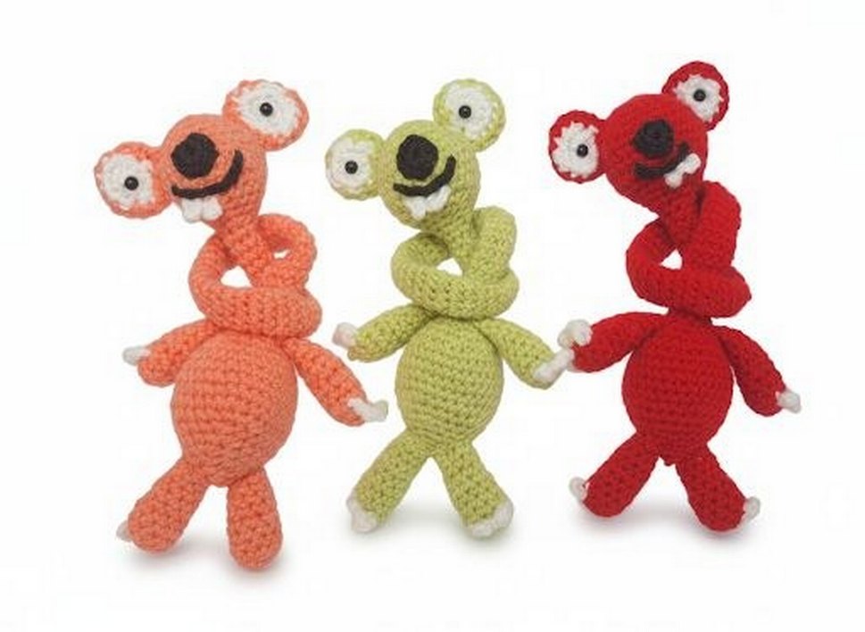 Büyük gözlü ve gülümseyen, eğlenceli karakterlere sahip renkli örgü peluş oyuncaklar. Yumuşak ve el yapımı. çantaya, direksiyona bağlanabilir. buz devri sid. siparişe özel yapılır