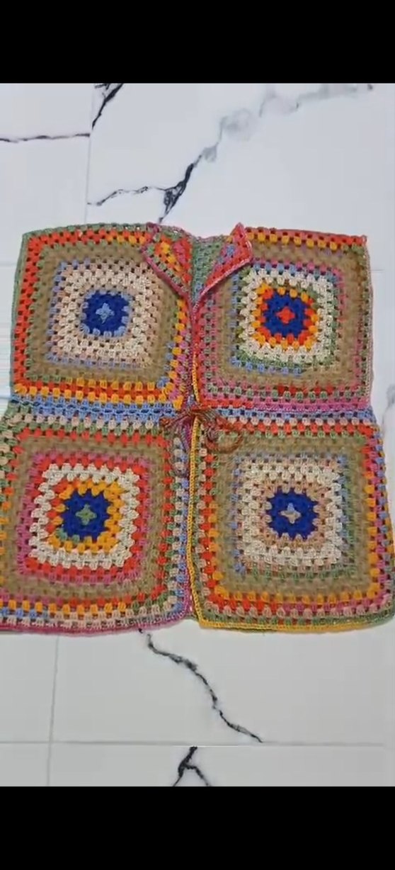 Renkli, desenli örgü kumaştan yapılmış yumuşak yelek. Yumuşak dokusu ile rahatlık sağlar.