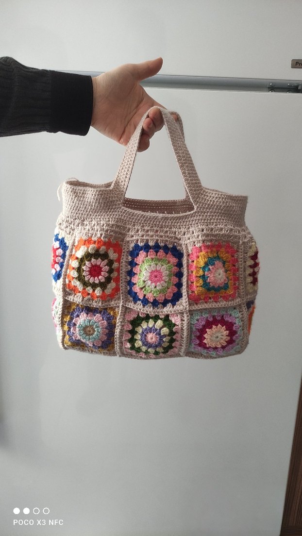 Kullanılmamış ve çok düzgün örülmüş, rengarenk, hatasız sıfır el çantası.