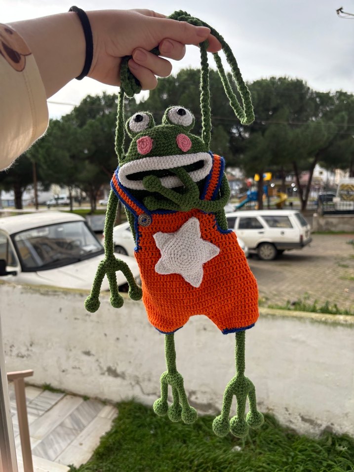 Renkli Örme Kurbağa Peluş Oyuncak çanta