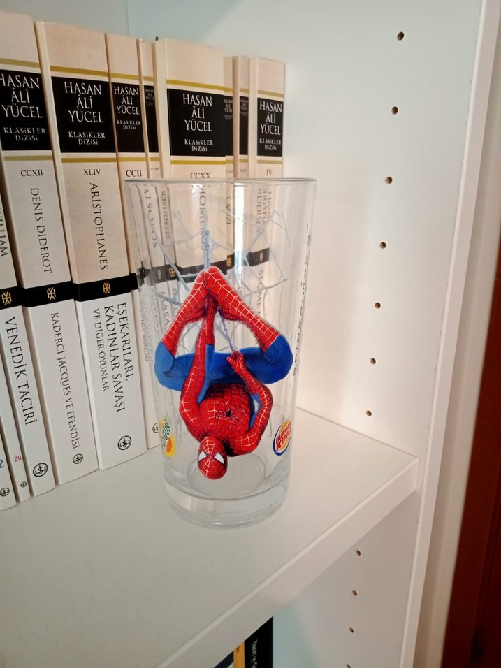 Renkli Örümcek Adam figürüyle süslenmiş, ters asılı duran şeffaf bardak. ️İkili fiyattir. Ankara içi elden teslim edilebilir.