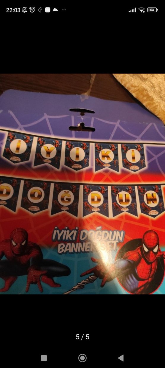 Renkli Örümcek Adam temalı, mavi zemin üzerinde büyük harflerle iyiki doğdun yazisı 1 kere kullanıldı sorunsuz masa örtüsü de dolabımda mevcut