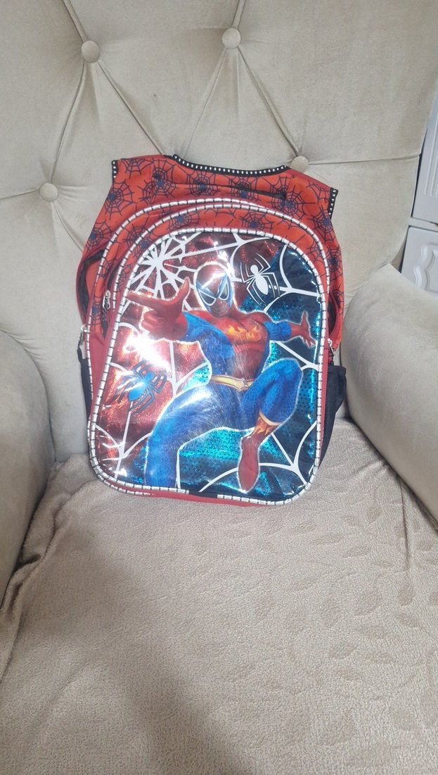 geniş ana bölmeli Örümcek Adam temalı çocuk okul çantası. ️kitapların ağırlığından olsa gerek sağ taraftaki kulpu koptu ve sağ taraf biraz söküldü.1ay ancak kullanmıştır.diktirip kullanmak isteyen olursa uygun fiyata gönderirim.geçen sene 400tlye aldık