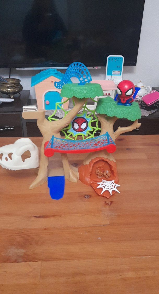 Renkli Örümcek Adam temalı oyun seti, köprüler, ağlar ve küçük figür içerir. Hayal gücünü destekler. ️