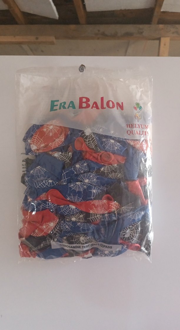 Örümcek ağı desenli, koyu renkli çok renkli balonlar içeren set. Helyumla dolum için uygundur. ERA BALON markalı ve helyum kalitesi belirtilmiştir.