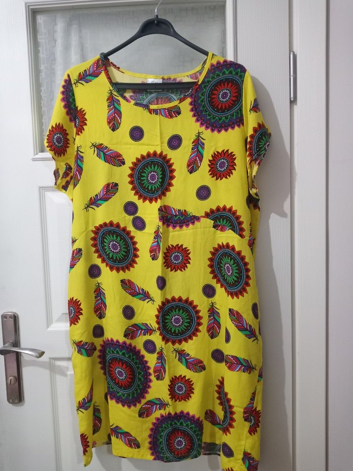 Renkli otantik desenli, kısa kollu, yuvarlak sadece bir defa kullanıldı beden değişikliğinden satışta
