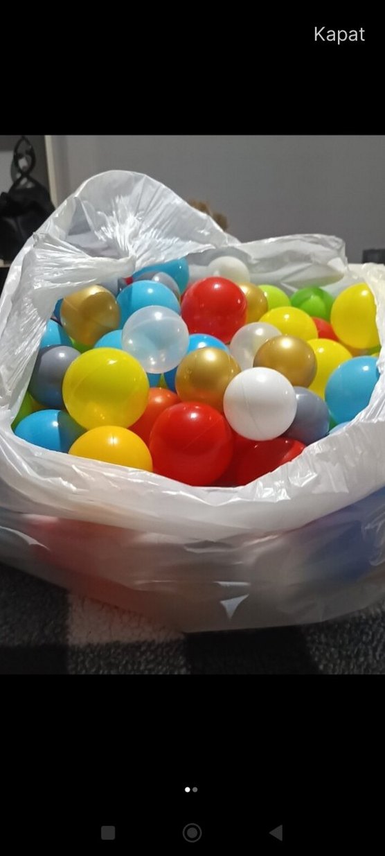 Çeşitli parlak renklerde renkli plastik oyun topları paketi. 110 tane var