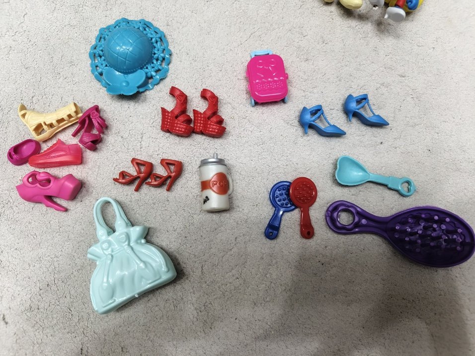 Ayakkabılar, sırt çantası, elbise ve çeşitli küçük parçalar içeren renkli oyuncak aksesuarlar dmden fiyat bilgisi alın ayrı ayrı satılır dilerseniz set halinde de verebilirim