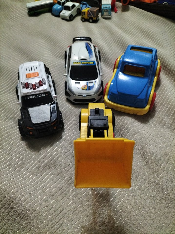 4 farklı renk ve özellikte araba. Bazı yerlerinde hafif deformasyonları var