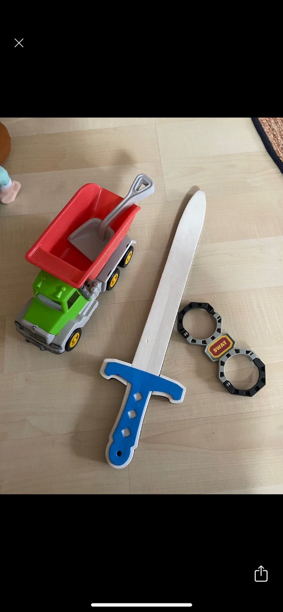 Renkli Oyuncak Kamyon, Tahta Kılıç ve Oyuncak Kelepçe