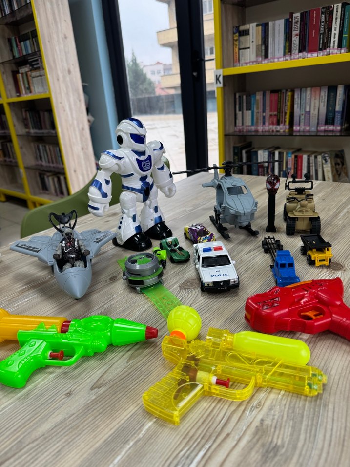 Renkli Oyuncak Seti: Robot, Araçlar ve Su Tabancaları