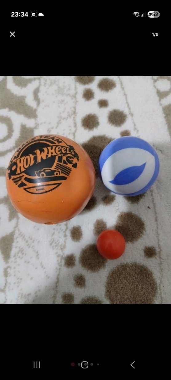 Turuncu Hot Wheels top ve mavi ile kırmızı küçük toplardan oluşan renkli oyuncak top seti. Oyun zamanı için uygundur.
