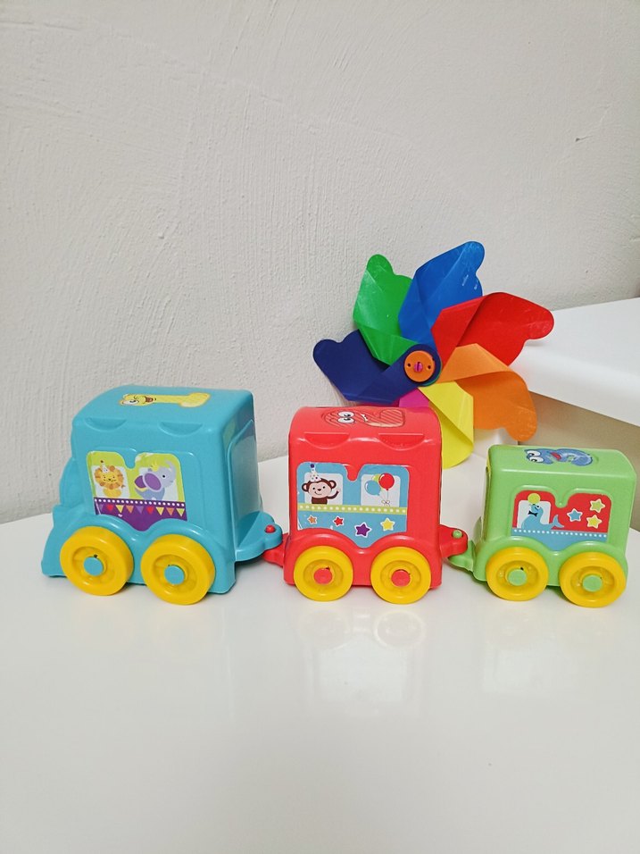 ÇEŞİTLİ ÜRÜNLER OYUNCAKLAR SAYFAMDA MEVCUTTUR DİĞER İLANLARIMA BAKMADAN GEÇMEYİNİZ Üç bağlı vagondan oluşan renkli oyuncak tren seti. Dayanıklı plastikten, parlak tekerlekler ve yel değirmeni aksesuarı ile.