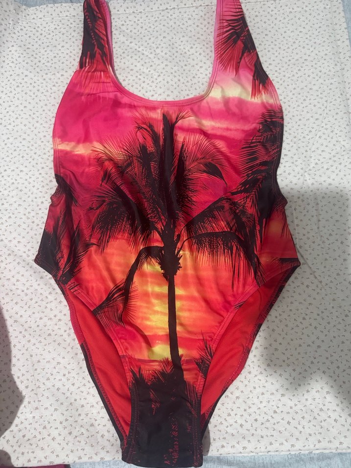 Renkli Palmiye Desenli Kadın Mayo