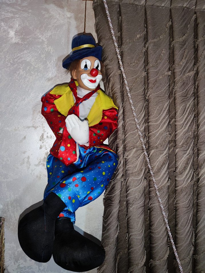 Büyük Boy 80 cmMavi şapkalı, sarı yakalı ve benekli pantolonlu renkli palyaço