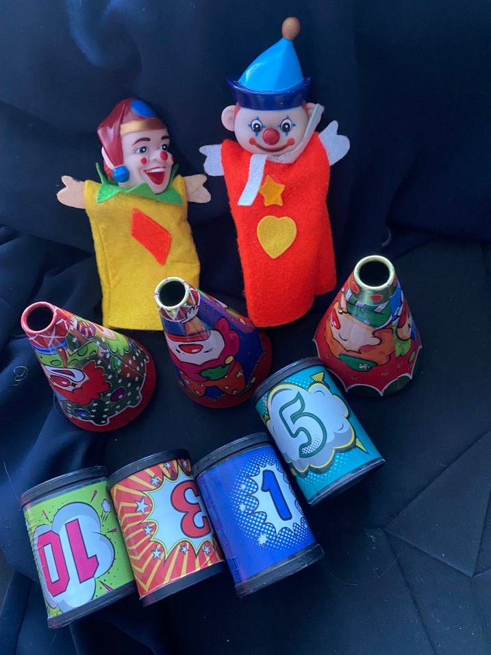 Renkli palyaço eldiven kuklaları, parti şapkaları ve rakamlı bilekliklerle eğlenceli oyuncaklar. Göründükleri gibi iade yok bilginize