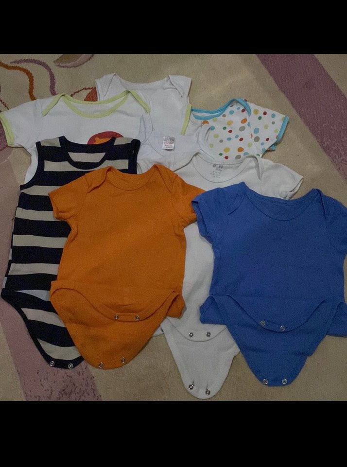 Pamuklu, 3 tanesi mothercare marka sorunları yok, 2’si e-bebek, 3’ü de farklı markalar mavinin arkasında küçük bi delik var turuncu az kullanıldı ama alt kısmında leke var, beyazında çıtçıt kısmında biraz yırtık var diğerlerinde hiçbir sorun yok detaylı çektim