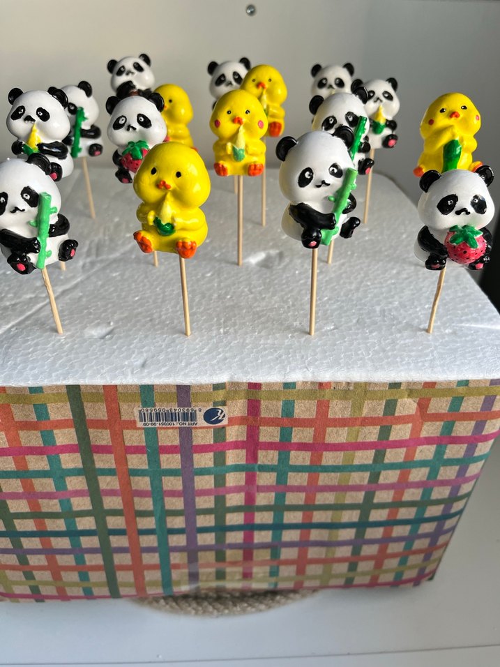 Renkli Panda ve Civciv Figürlü Saksı Süsü