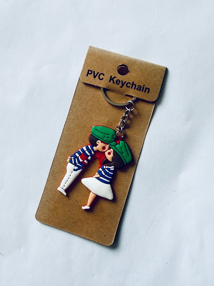 Renkli PVC malzemeden yapılmış, Parisli çift figürlü püsküllü anahtarlık, bohem ve retro tarzları yansıtıyor.