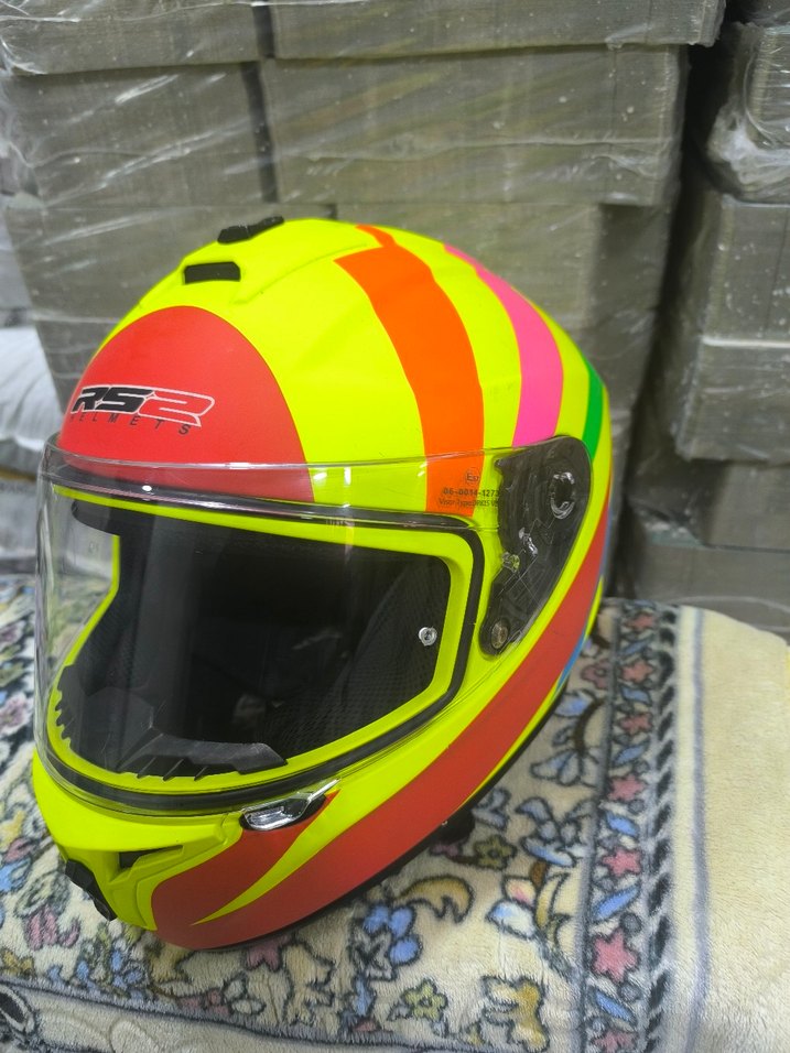 Bu renkli biker motosiklet kaskı parlak yüzeye ve canlı baskılı tasarıma sahiptir, dayanıklı plastikten üretilmiştir. ️