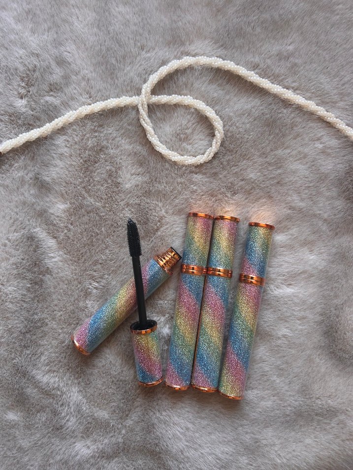 Parlak çok renkli tüpte, siyah fırçalı renkli maskara. ✨