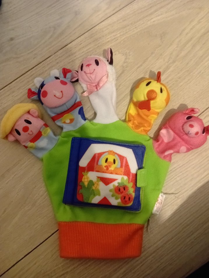 Beş hayvan figürlü, renkli parmak kuklası eldiveni ve avuç içinde küçük kumaş kitap içerir. Eğlenceli oyun ve hikaye anlatımı için uygundur. playscool marka temizdir birtek etiket yeri etiketinin yazısı hafif soluk ve sökük