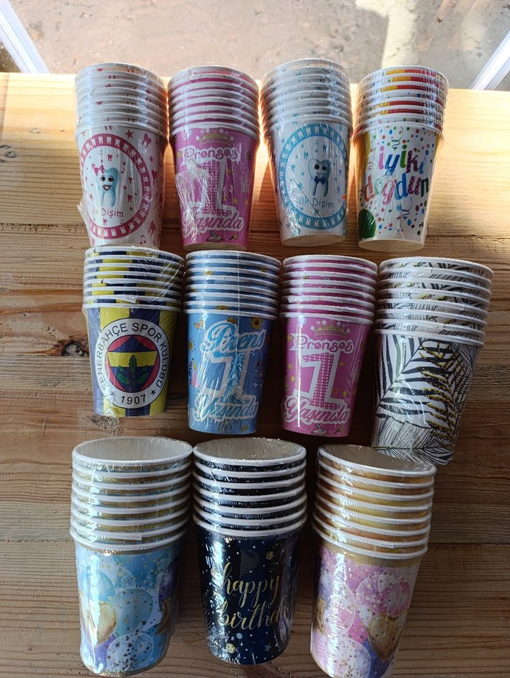 Doğum günü, spor ve kutlama temalı çeşitli desenlere sahip renkli karton bardaklar, partiler için uygun. Not: İstediğin 8 adet karton bardak gönderilir..