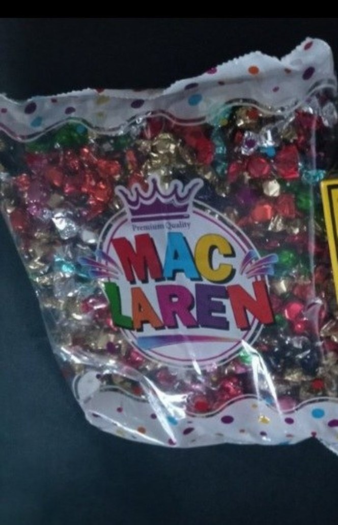 Renkli ve parlak süslemeler içeren parti malzemeleri paketi, üzerinde MAC LAREN etiketi bulunmaktadır.