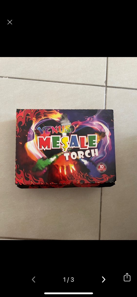 Venus markalı, renkli ışık efekti veren parti meşalesi. Kutuda 10 adet meşale bulunur.