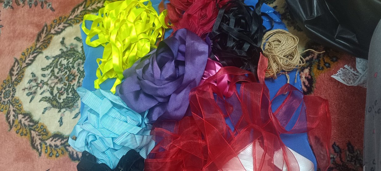 Çeşitli canlı renklerde, parti süslemeleri ve el işleri için uygun renkli kurdeleler seti.