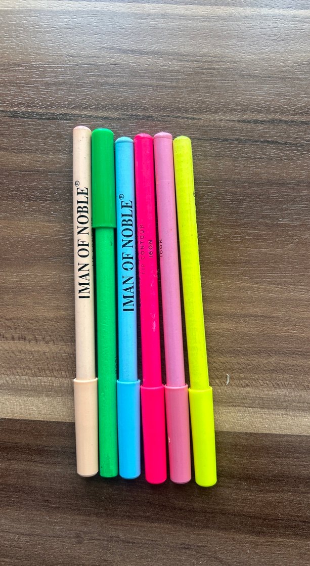 İman Of Noble markasına ait, pastel tonlarda beş farklı renkte kalem seti. Lip contour yazıyor ama ben eyeliner olarak kullanmıştım özellikle mavi olanı. Bazıları hiç kullanılmadı. Mavi olanı bir iki kere ucunu açmışım. Yeniye es değer. Artık renkli makyaj yapmıyorum bu nedenle satmaktayım.